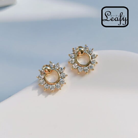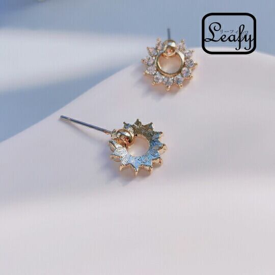 Leafy☆キラキラサークルピアス☆雪の結晶のように美しい印象に♪エレガントな輝きが耳元をゴージャスに演出してくれます♪ ゴールド(gold)【定形外・メール便対応】☆☆フォーマル・パーティー・女子会・デートにも♪ アナと雪の女王