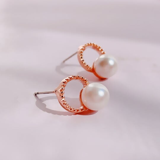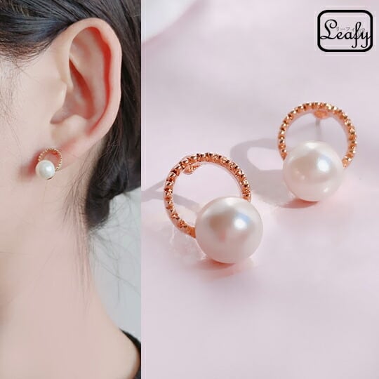 Leafy 真珠/フェイクパールリングピアス♪エレガントにお洒落に耳元を演出してくれます☆高貴でお上品な印象に♪フォーマルにも☆優しいピンクゴールド(pink gold)x05393a-pink gold☆☆参観日・卒業式・入学式にも♪ 冠婚葬祭