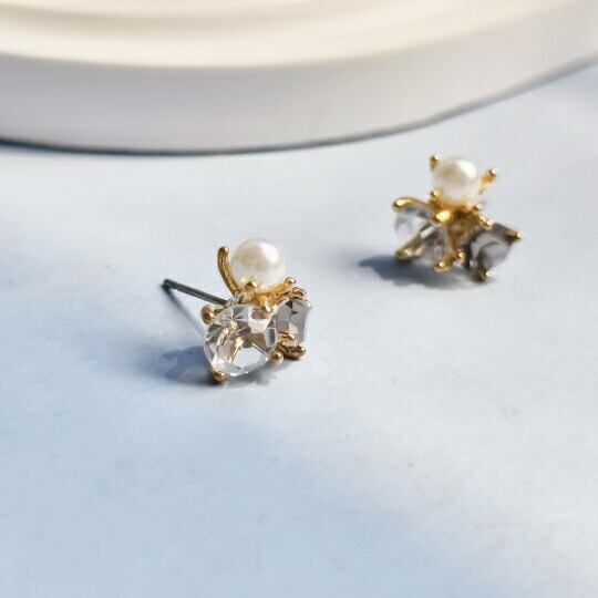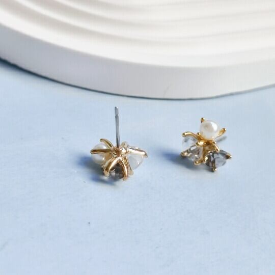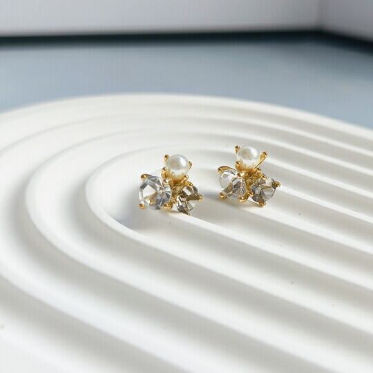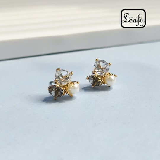 Leafy ダイヤモンド風☆ジルコニアの高級感あふれる輝きとパールの組み合わせがお上品なデザインピアス 程よいサイズ感なのでデイリーやオフィスにはもちろん、高貴な輝きでフォーマルシーンにも活躍できます CZゴールドx08192a-gold☆