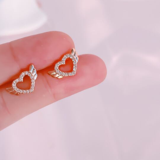 Leafyリーフィ 恋が叶いそうなオープンハートと天使の羽のピアス 1ペア 恋のキューピット エンジェルウィング レディース プレゼント ギフト 普段使い お出かけ お呼ばれ ピンクゴールド x09030apg