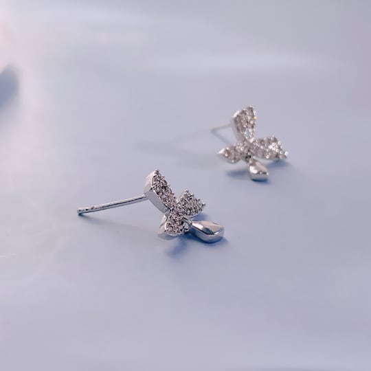 Leafyリーフィ プロペラの羽根のようなデザインのピアスにジルコニアが煌く 1ペア シンプルなので普段使いにオススメ! レディース プレゼント ギフト お出かけ シルバー x09078a