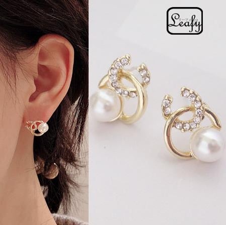 Leafy 程よいサイズ感でコーデの邪魔をしない☆ラインストーン&ベビーパールのピアス レディース 1ペア 上品 エレガント 真珠 お出かけ パーティー 二次会 食事会 女子会 デート イベント プレゼント x09176a 冠婚葬祭 入園式 6月誕生石