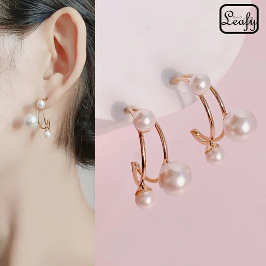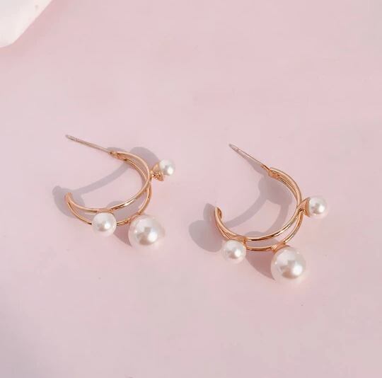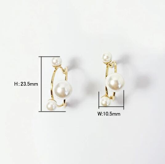 Leafy 大小異なる3つのパールが耳元を飾る大人女子 フープ ピアス 1ペア レディース 半円形がお洒落なデザイン フォーマルでもデイリーでも◎ お出かけ イベント デート 結婚式 二次会 パーティー 普段使い プレゼント x09159a