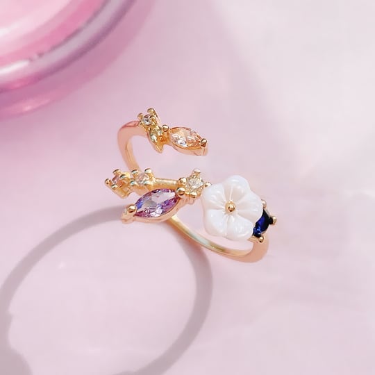 ■愛らしい花々が指先に!Terse ホワイトフラワーをモチーフにしたCZダイヤリング☆