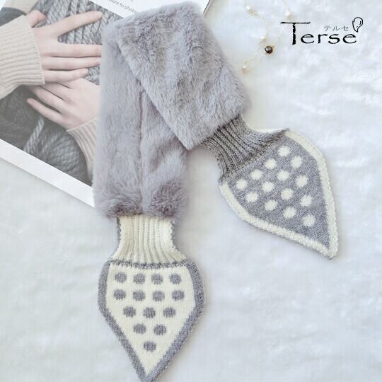 胸元に愛らしさと温もりをプラス、Terseの可愛いファーニットリボンマフラー!