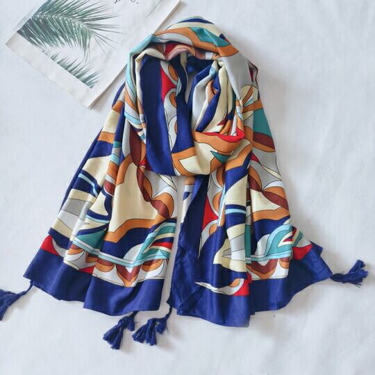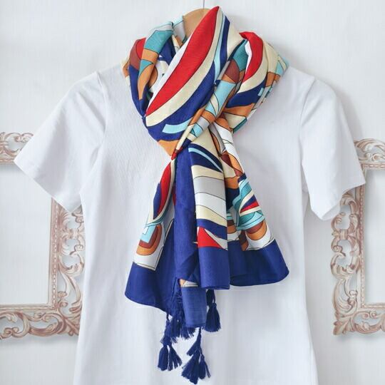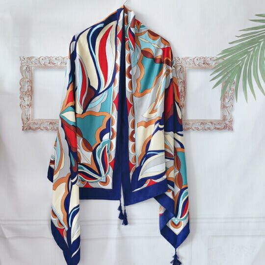 鮮やか花びらデザインのお洒落ストール 大判ストール 薄手で滑らかな肌触りが魅力 長方形スカーフ 縁部分にふさふさなポンポンをあしらったプリーツデザイン 遊び心のあるスカーフ UVカット 豊かな色彩を堪能冷房対策 冷え性対策ma0095a