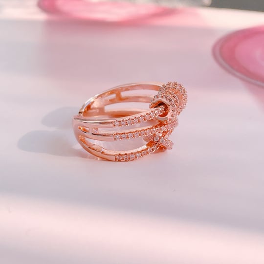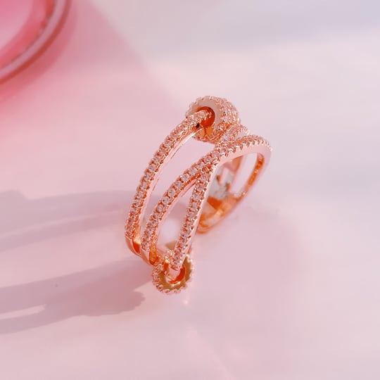 Terseクロスさせた3連リングのようなデザインのCZダイヤリングは程よいボリューム感とニュアンスのあるラインが美しく女性らしい手元に導いてくれます キュービックジルコニア フォークリング サイズフリー 贅沢 上品 パーティー 二次会 お呼ばれ rs0232apk