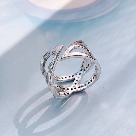 Terse 立体的に交差するクロスフォルムに、厳選されたキュービックジルコニアを豪華にあしらいました フォークリング 輝くCZダイヤ 指輪 普段使い レディース 二次会お呼ばれ サイズフリー プレゼントオフィス 二次会 オンオフ rs0210as