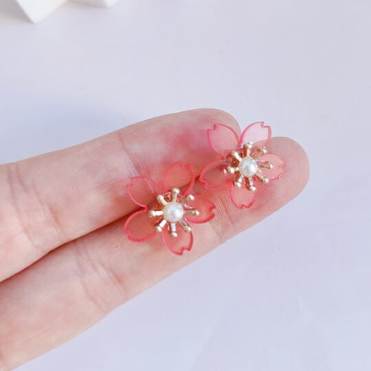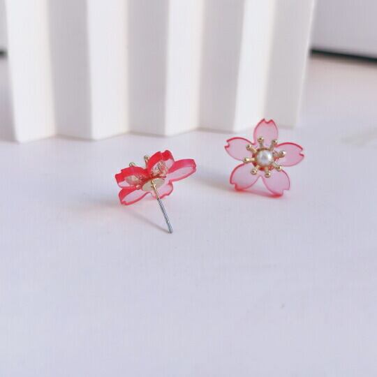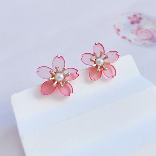 Terse ピンクの透明感が可愛い桜ピアス 1ペア レディース スタッドピアス さくら フラワー 花 クリア キュート 可愛い おしゃれ 華やか 春 お出かけ イベント デート 結婚式 二次会 お呼ばれ パーティー 普段使い 入学式 入園式 卒業式 卒園式 sp0123a3月誕生花