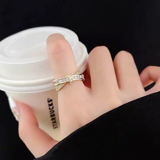 Terse クロスデザインのようなCZダイヤリング リボンのようなデザインでボリュームがあり、女性らしい華やかな指輪 高品質キュービックジルコニアを贅沢に使用 存在感のあるリングですので、カジュアルにもお出かけにも様々なシーンにてお楽しみいただけます rs0363a