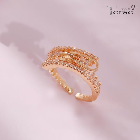 Terse ファスナーをモチーフにデザインされたCZダイヤリング 程よく立体的なボリュームがあり、手もとコーデのアクセントになるアイテム 高級感ある重厚なキュービックジルコニアフォークリング 遊び心が覗く大人仕様のアイテムに仕上がっています ゴールドrs0330a