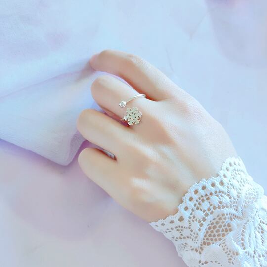 Terseシルバーリング 雪の結晶モチーフ シンプルの中にも美しい印象に どんなスタイルにも合わせやすいので大活躍☆シルバーring-014 プレゼントにも喜ばれます☆Unisex☆☆ 指輪 サイズフリー rs0052a