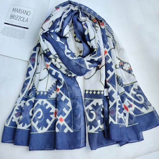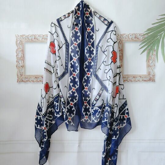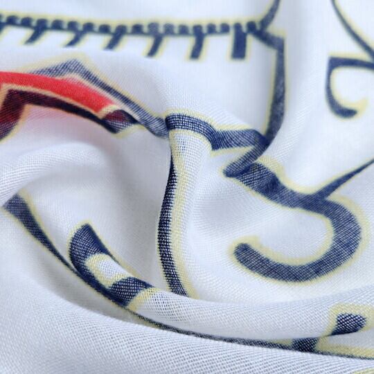 上品なアラベスク柄を描いた超大判薄手ストール 落ち着いた配色で豪華なアラベスクを描いたフォークロアムードの1枚 ミドルシーズンの温度調節やUV対策はいつものシンプルワンピースも、この1枚で生まれ変わります ネックに巻くと素材感のあるアクセントma0285a