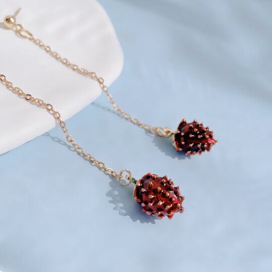 Leafy いつものファッションに合わせるだけで貴方だけのスタイルに☆つぶつぶイチゴのチェーンピアス 1ペア レディース かわいい 触感 真っ赤 苺 いちご フルーツ 果物 お出かけ デート お呼ばれ パーティー 普段使い プレゼント 冬 春 イチゴ狩り 旅行 x09232a