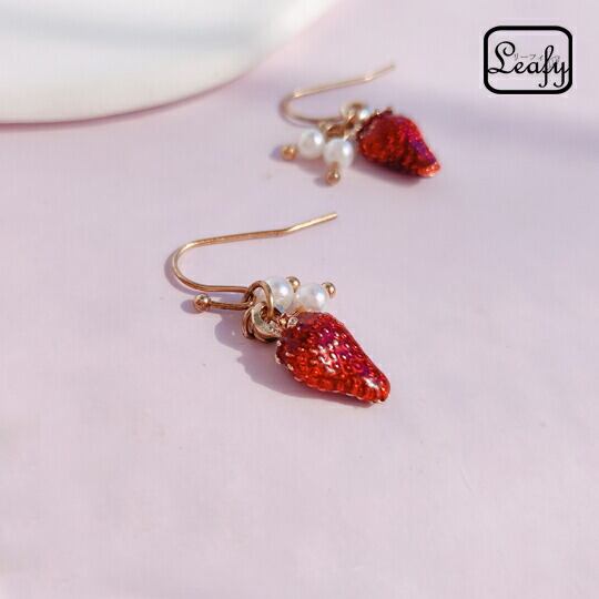 Leafy 粒粒も再現!おいしそうな真っ赤ないちごとパールのフックピアス 1ペア レディース いちご 苺 ストロベリー フルーツ 果物 ショートケーキ 普段使い お出かけ パーティー 食事会 女子会 デート プレゼント ギフト 冠婚葬祭 入園式 x09243a ☆春
