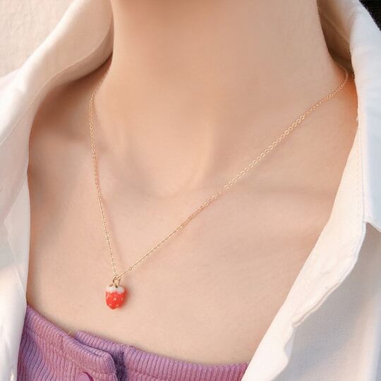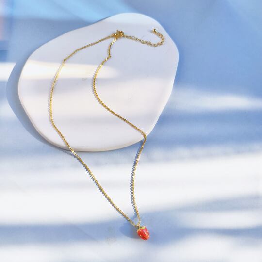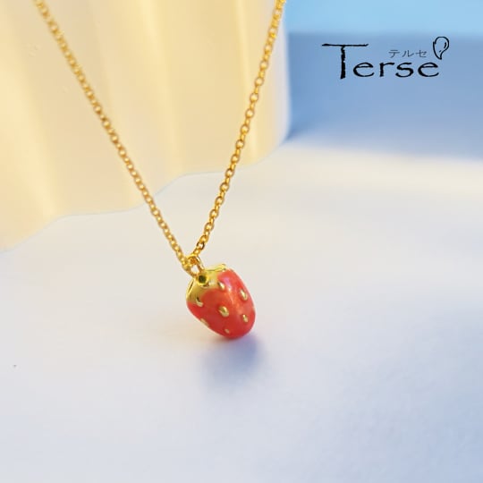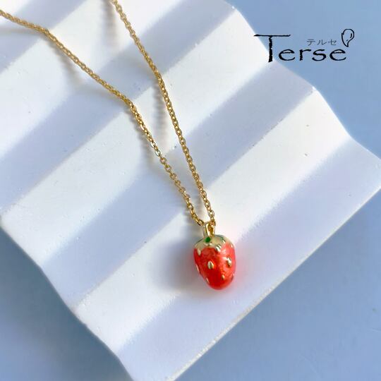 色鮮やかな甘さを胸元に!Terse エナメル加工が施された赤い輝きが特徴の苺モチーフペンダント