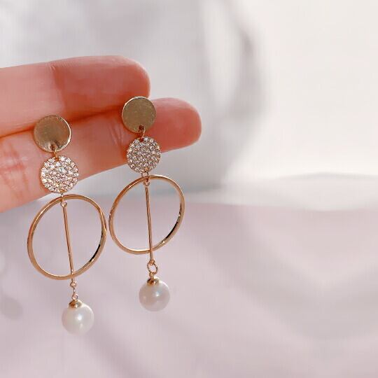 Leafy リングとプレートが揺れるパールピアス ゴールド 1ペア レディース 揺れるたびに光に反射してキレキラと輝きます お出かけ デート お呼ばれ パーティー 二次会 食事会 女子会 普段使い プレゼント sr00047yg 冠婚葬祭 入園式 入学式 卒業式 卒園式