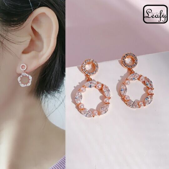 Leafy 女性の魅力を引き出すゴールド☆ジルコニアとミニパールのダブルリングピアス 1ペア レディース 大人可愛い サークル 環 輪っか 普段使い お出かけ イベント パーティー 食事会 女子会 デート プレゼント ギフト x09265ag 4月誕生石
