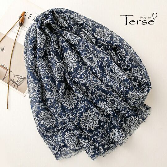 エレガントでラグジュアリーな雰囲気を感じさせる文様として、古くから人気のダマスク(damask)柄プリントストール コーディネートのアクセントとして存在感を放つオリエンタル柄 ボリュームがあるので首元に巻くだけではなく、羽織るように合わせます ma0241ana