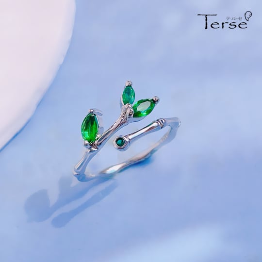 このリングは、友人や愛する方へのギフトとしてもおすすめです。リーフモチーフが持つ意味は、自然の豊かさや穏やかさを象徴し、特別な瞬間をさらに素敵に演出します。「TerseエメラルドグリーンCZダイヤで装飾された繊細な葉のモチーフフォークリング」で、指先に自然のぬくもりを添えてみませんか?