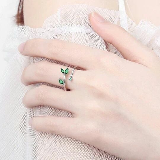 TerseエメラルドグリーンCZダイヤで装飾された繊細な葉のモチーフフォークリング 自然の木々や草花にに囲まれると心穏やかな生活ができます ぬくもりを感じるナチュラルで女性らしい ドロップリーフラインリングのお目見えですリーフ ギフト サイズフリrs0280a 5月誕生石