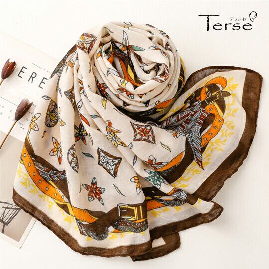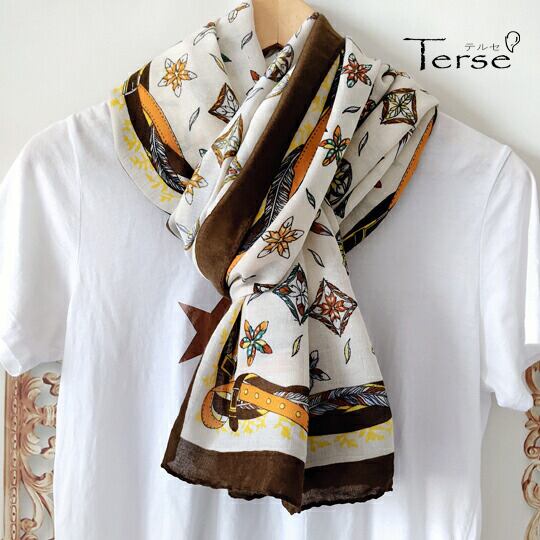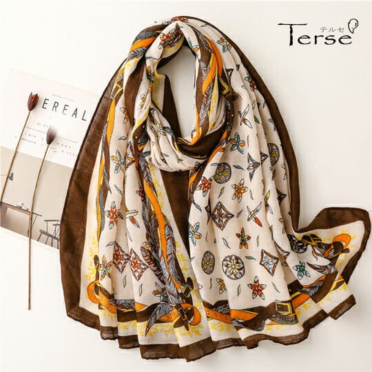 ■クラシカルなデザインが魅力の大判ストール!「Terseクラシカルなデザインに落ち着いた配色が魅力の大判ストール」を首元に巻いて、上品で洗練された印象を演出してみませんか?フラワーやフェザー、ベルト柄の組み合わせが特徴的で、巻き方によって異なる表情を楽しむことができます。しわになりにくい素材を使用しているため、扱いやすさも抜群です!