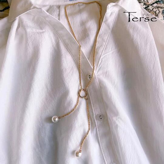 「Terse ループスライドロングネックレス」は、華やかなゴールドカラーに2つの真珠が添えられ、清楚でありながらおしゃれな雰囲気を演出します。リングデザインが特徴的で、普段使いからお出かけ、パーティー、さらには冠婚葬祭まで幅広く活躍するアイテムです☆