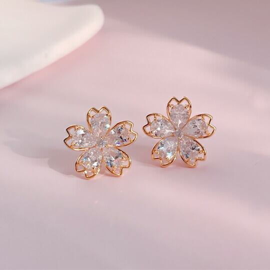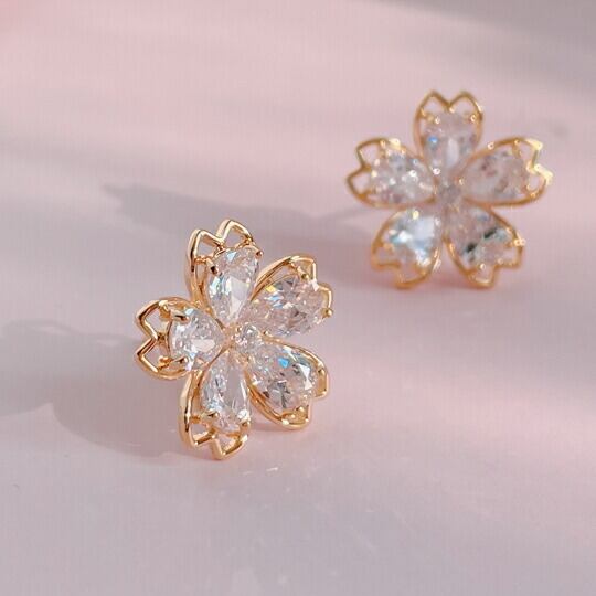 Leafy 日本の象徴でもある桜をモチーフにしたデザインCZダイヤピアス さくらの花満開を迎えると どこか淋しさを感じてしまうほど美しく儚い桜 大粒キュービックジルコニアを愛らしく引き立たせます 大切な方へのプレゼントやご自身のご褒美にもおすすめ 春 sr05635ywh