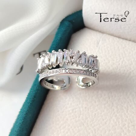 Terse 人目を引きつけるエレガントな2連リング きらめくファセットを施したCZダイヤを並べ、シンプルでありながら洗練されたデザインに仕上げました サイズフリー 開口 指輪 ジルコニア 特別なシーンにふさわしく、魅力的なギフトにも最適 普段使い rs0209as