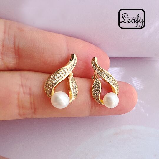 RUKA 瑠夏【淡水パール】流れるような曲線が美しい☆ジルコニアデザインピアス 1 ペア レディース エレガント 大人可愛い お出かけ お呼ばれ パーティー 二次会 女子会 食事会 プレゼント ギフト 6 月誕生石 本物真珠 入園式 入学式 卒業式 pe0033a