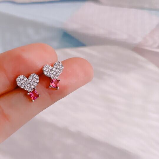 Leafy ピンクジルコニアが光るミニハートピアス 1ペア レディース シルバー 小さめなのでオフィスでも◎ お出かけ イベント デート 結婚式 二次会 お呼ばれ パーティー 普段使い プレゼント 4月誕生石 sr00534ysr