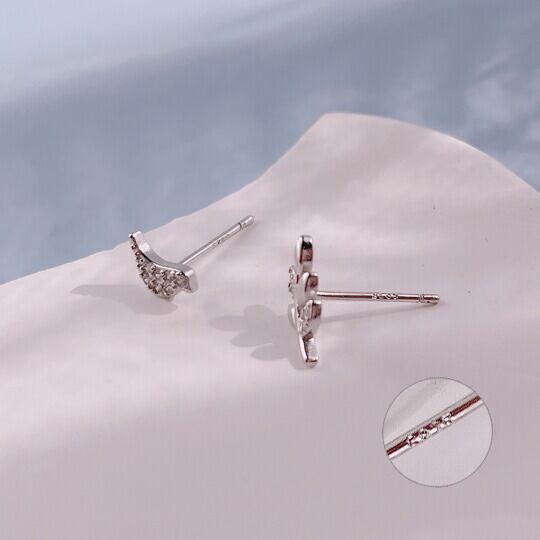 小粒のCZダイヤモンドがふんだんに敷き詰められた可愛らしい小鳥とリーフのデザインが特徴。左右非対称のアシンメトリーピアスで、耳元を華やかに演出します☆