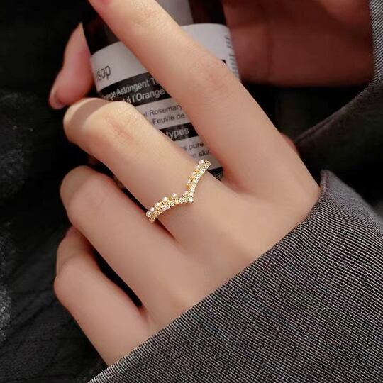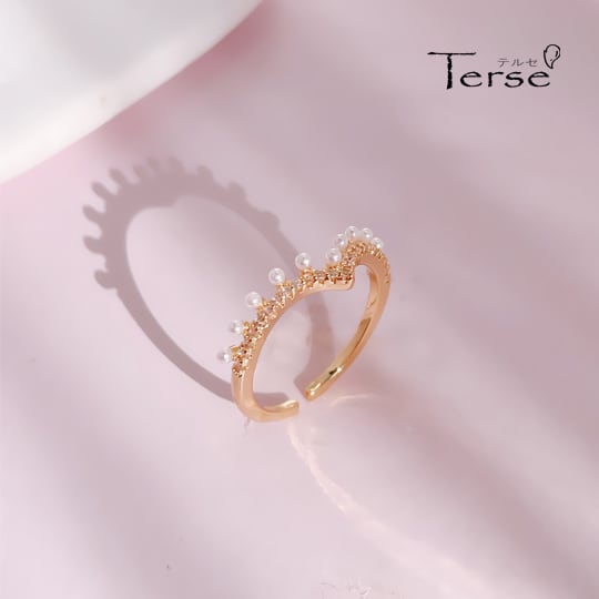 Terse 11粒のベビーパール&CZダイヤをあしらった華奢なV字ラインは、指を細く長く見せる指輪 他のリングとの重ねづけでもその魅力を十分に発揮してくれます オン?オフを問わず ギフト シンプルで 上品で大人な印象のフォークリング 普段使い ドレス rs0295a