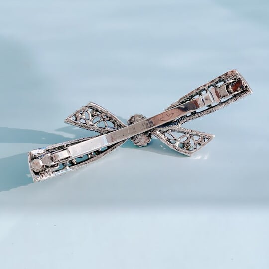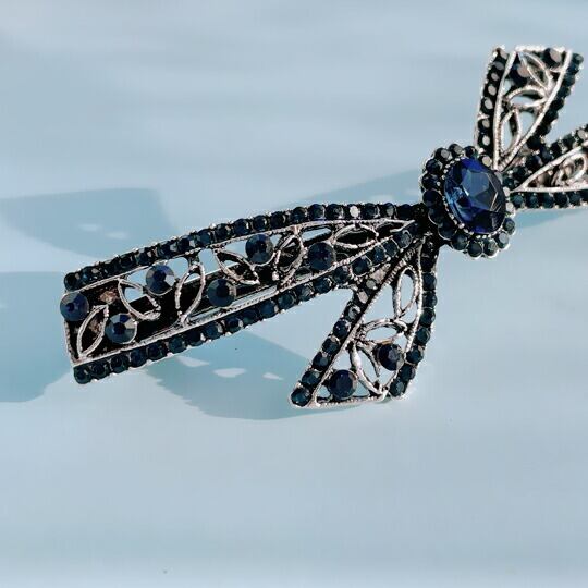 Leafy 挟むだけでさりげなく華やかになりリボンバレッタ 透かしリボンの中心にサファイア色のガラスをー粒を飾りつけました お上品な透かしアンティークヘアアクセサリー 落ち着いたお色味 ビジュー 母の日 贈り物 ご褒美 自分用 普段使い ヘアアレンジ お返し ha0154a