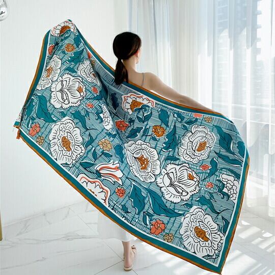 このマフラーは、コートのいらない時期にも便利で、ちょっと羽織るだけでスタイルがアップグレードします。「シンプルな服装に彩りを添える鮮やかな花柄をあしらったマフラー」を身に纏えば、グリーンの美しい印象が、周囲の視線を集めることでしょう!また、デイリー使いやお出かけ、特別なイベントにも活躍し、大切な方への贈り物としても最適ですので、この機会にぜひお求めください。