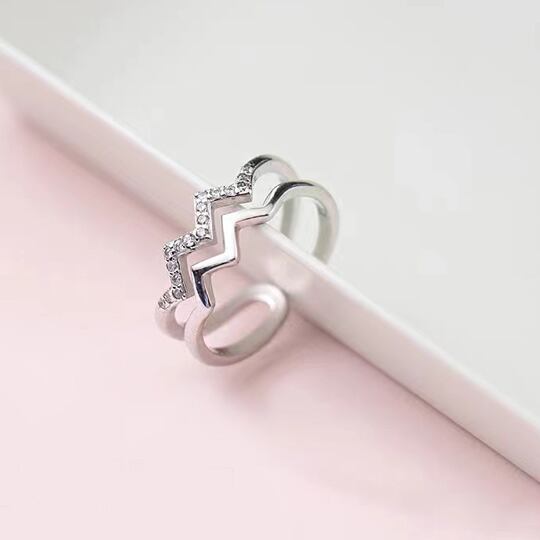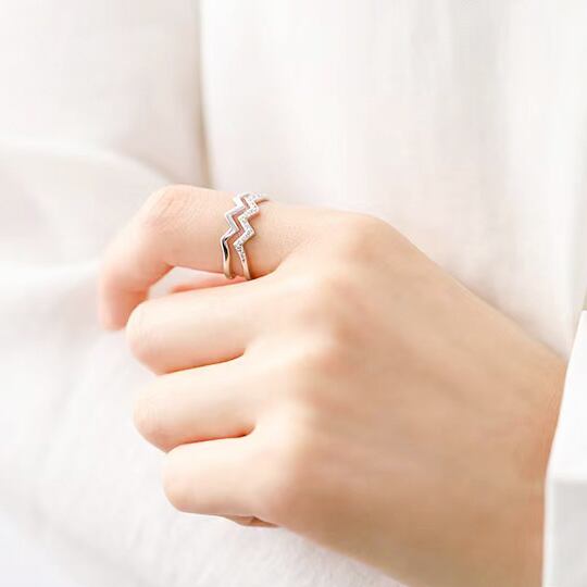 Terse ウェブーにシェイプされたラインに、CZダイヤモンドをセットした2連フォークリング 上品なW字ラインで指長効果も抜群 指元をより華やかに 装いを選ばないシンプルなリングは、あらゆるシーンに使える指輪 サイズフリー プレゼント キュービックジルコニアrs0208as