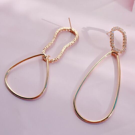 Leafy 形が異なるダブルリングピアス ゴールド 1ペア レディース 皆の注目を集める個性的なデザイン おしゃれな大振りピアス ティアドロップ オーバル 楕円 お出かけ デート お呼ばれ パーティー 二次会 14KGP ゴールドメッキ sr01232yg 秋