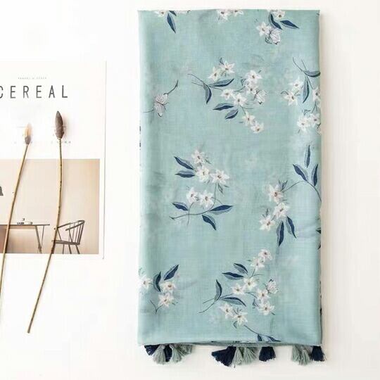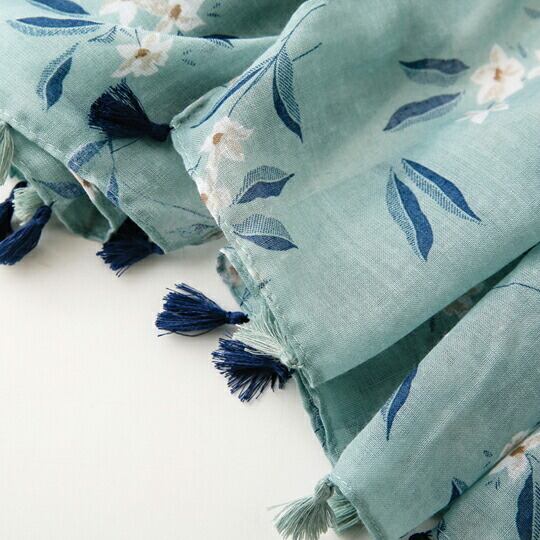 ■これからの季節にぴったり!透け感のあるミント色フラワープリントストール