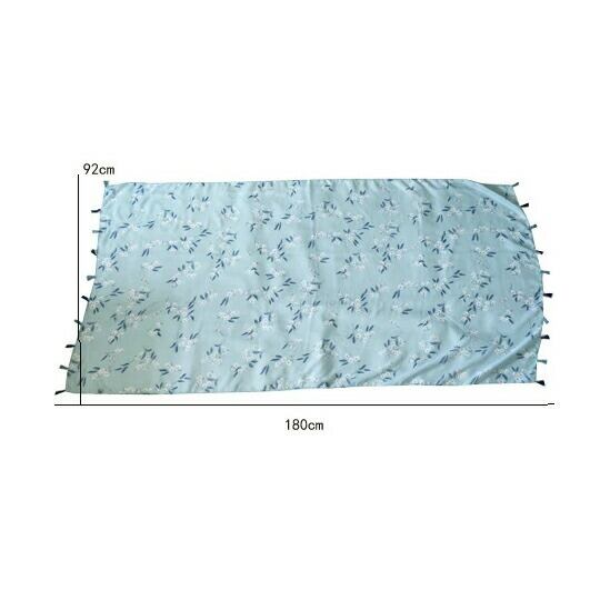 この「透け感のある薄手生地にフラワープリントを載せたミント色ストール」は、春夏のスタイリングに華やかなアクセントをもたらします!柔らかなミント色と可憐なフラワープリントが、あなたのコーディネートに爽快感と軽やかさをプラスし、日常のおしゃれを一層楽しくしてくれます。