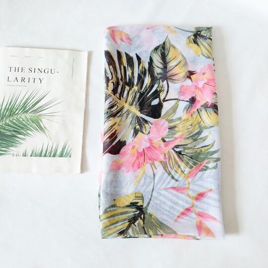 上品さ漂う ハイビスカス柄 薄手 大判 ストール アロハシャツのようなリゾート感のあるプリントが夏の気分を盛り上げてくれるスカーフ お首周りにふわりと軽く巻くだけで、お肌の色も一段階明るく見せて 7月花 ハワイアン