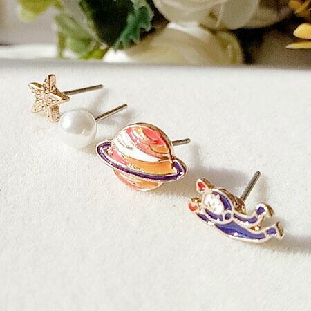 Terse 楽しい宇宙旅行ピアス☆4点日替わりセット【宇宙飛行士/惑星/星/パール】その日の気分で着せ替えOK!神秘的な星柄アクセサリー|普段使いからパーティー、フォーマルまで大人可愛いサブリーピアス sa0150a