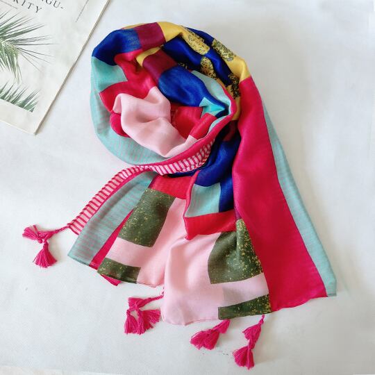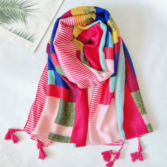 カラフルでにぎやか☆プライマリーカラーストール レッド系 普段のコーデにプラス 大判タイプで肩やひざかけにも アレンジ自在 薄手 スカーフ マフラー ショール 紫外線/冷房対策 エスニック ボヘミアン アジアン お出かけ 普段使い プレゼント MA0022