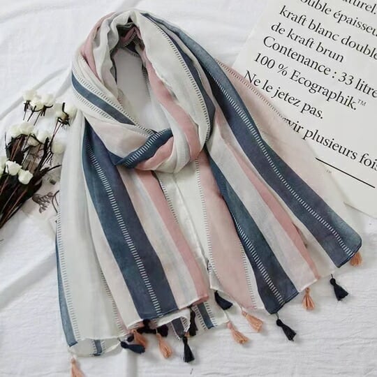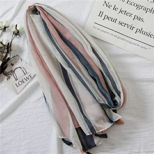 ふんわり軽やかな肌ざわり!大判のラインカラーストール