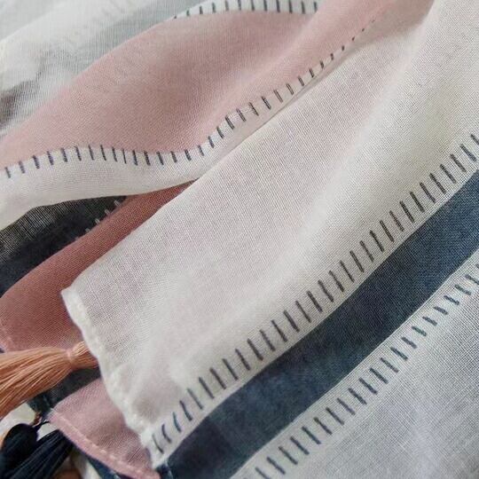 ふんわり軽やかな肌ざわりの薄手大判ラインカラーストール 縦縞模様が首元を表現豊かにしてくれます カジュアルスタイルや大人っぽいキレイめコーデにもオススメ 日焼け止め UVカット レディース マフラー ピンク グレー ショール ma0121a