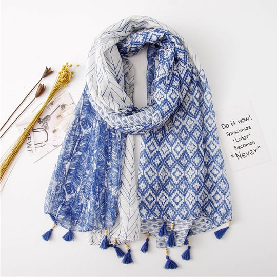 透け感のある素材にレトロなレース模様をプリントストールカジュアルな雰囲気に仕上げ首に優しく馴染む軽やかな巻き心地で春先から夏の日差し、冷房対策などに大活躍 薄手 UVカット 首や肩にかけてのおしゃれのワンポイントにma0078a