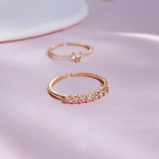 シンプルでありながら魅力的な輝き!Terse CZダイヤモンドがきらめくハーフエタニティーリングとクリアなキュービックジルコニアの2個セット