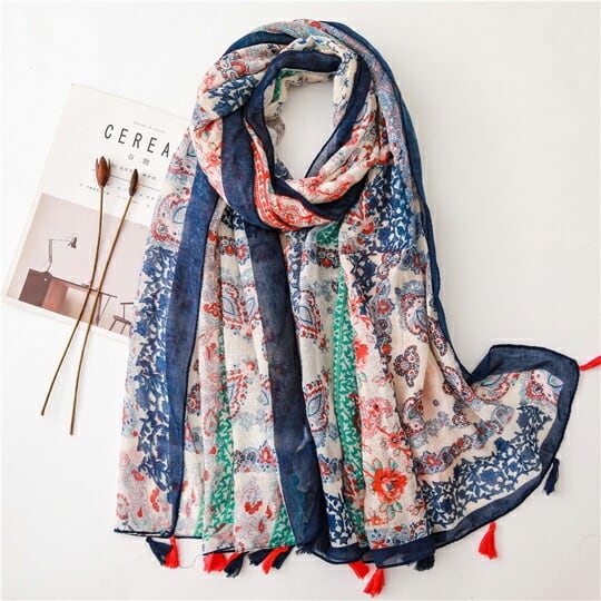 南仏プロヴァンスの アンティーク花柄 パッチワークプリント大判ストール ボリュームで羽織りもののように肩掛けしたり、首にぐるりと巻いてボリュームを出したりと巻き方も自在 秋冬のダークになりがちなファッションに ma0300a