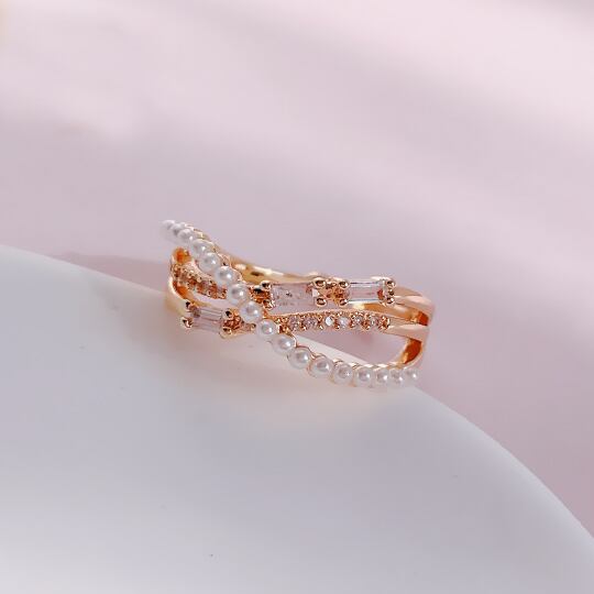 Terse 重なり合うラインが立体的に表現されたデザイン性の高いリング 上質なCZダイヤモンド&ベビーパールをセッティングしました 交差する3本の流麗なラインが、女性の指の細さを際立たせ、さりげなくおしゃれ感を演出 美しく輝きエレガントな印象もプラス rs0316ag