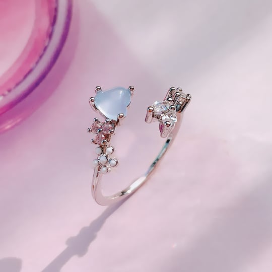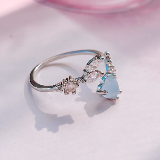 大人の女性にぴったりな愛らしさ!Terseのくるりと指に巻きついた上品なグレー色のハートビジュリングで、指先にキュートなアクセントを加えましょう♪