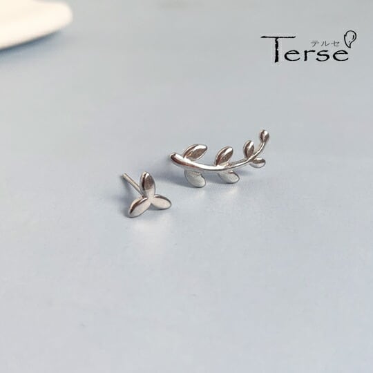 Terse S925 ピアス 1ペア レディース アシンメトリー 左右非対称 リーフ 葉っぱ 葉 木の葉 オリーブ 枝 小ぶり かわいい ワンポイント お出かけ デート パーティー 普段使い プレゼント SP0110A